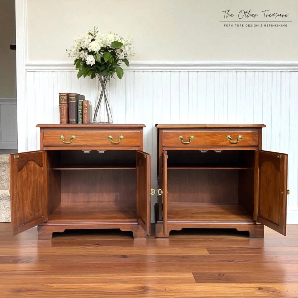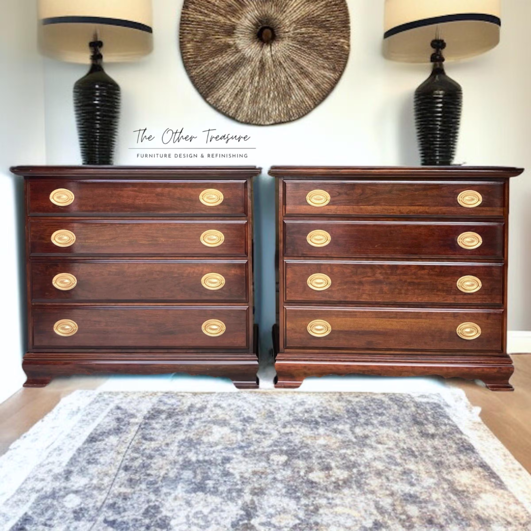 A curated collection of vintage furniture, professionally refinished and ready to elevate your space. 📍 Local pickup in Raleigh, NC | 🚚 Nationwide delivery available Categories: Select a Category Available Now Sold Archive Available to Customize Available Now Sold Archive Available to Customize Victorian Renaissance Revival Dresser | Circa 1875–1885 $1,075.00 Henredon Scene One Campaign Dresser | 72” Wide | Mid-Century Modern $2,495.00 Sold out Henkle Harris Black Walnut Bedside Tables | Nightstands $1,595.00 Stunning Vintage Mahogany Sideboard/Buffet $1,295.00 Sold out Inlaid Flame Mahogany Console Table | Credenza | Entryway Piece $2,075.00 Sold out Solid Cherry Pennsylvania House Inspired Dresser $1,495.00 Vintage Flame Mahogany Demilune Console Table | Federal Table $1,395.00 Vintage Craftique Mahogany Pembroke Tables | Drop leaf tables $1,495.00 Coastal French Provincial 9-draw dresser | Credenza | Triple Dresser $2,495.00 Sage Green Console Table | Neoclassical Inspired Design $1,075.00 Vintage Chippendale Mahogany Accent Table | Drum Table | Side table $795.00 Vintage Chippendale Mahogany Tea Table with Fretwork | Flame mahogany | coffee table | accent table $895.00 Vintage Bassett Burled Walnut Dresser | Mid Century Neoclassical Chest | Refinished Solid Wood Tallboy $1,495.00 Set of Serpentine Bachelor Chests | Bedside Tables | Oversized Nightstands $1,000.00 Moody Oversized Nightstands | Bachelor Chests $1,595.00 Sold out Vintage Jasper Cabinet Mahogany Secretary Bookcase | Serpentine Drawers & Claw Feet $1,495.00 Sold out Dixie Mahogany Single Drawer Nightstand | Federal Style $295.00 Sold out Rare Craftique Mahogany Sideboard | Buffet $1,695.00 Sold out Ethan Allen Flame Mahogany Sideboard | Buffet $2,000.00 Sold out Custom Project $1,075.00 Sold out Set of Bachelor Chests 38"w | Oversized Nightstands | Bedside tables $2,895.00 Sold out Mid Century Blonde Beech Coffee Table with Brass Rosettes & Saber Legs – Neoclassical Vintage 1970s $695.00 Sold out Rare Pair of Mahogany Demilune Cabinets | Commodes | Nightstands $2,895.00 Sold out French Provincial Highboy Dresser – 1970s Vintage $1,075.00 Sold out Mid-century Sideboard | Buffet | Credenza | Gibbard Furniture $1,495.00 Sold out Bold Hot Pink Dresser with Floral Drawer Liners & Gold Ginkgo Pulls $1,295.00 Sold out Set of Bachelor Chests | Oversized Nightstands | Bedside Tables $1,895.00 Sold out Federal Flame Mahogany Server | Petite Sideboard $1,295.00 Sold out Henkel Harris Black Cherry Dresser | Style 124 | Finish 24 $1,695.00 Sold out Thomasville Regency Bachelor Chests | Oversized Nightstands 30" wide $1,895.00 Sold out Italian Provincial style Dresser | Mid Century Regency | Triple Dresser $1,495.00 Sold out Rare Oversized Craftique Bachelor Chests | 100% Solid Mahogany | 40"wide | Nightstands | Bedside tables $2,895.00 Sold out Flame Mahogany Heirloom Display Cabinet | Hutch | Entryway display $1,495.00 Sold out Neoclassical Console Table | Mid Century Regency Style | Foyer Table | Coastal table $795.00 Sold out 19th Century Antique Mahogany Nightstands | Restored Bedside Tables | 1800s Heirlooms $1,495.00 Sold out Italian Provincial style bachelor chest by Hooker Furniture | Dresser | Accent piece $1,495.00 Sold out Bobbin Oversized Bachelor Chests | Nightstands | 38" wide | Jenny Lind bedside tables $2,295.00 Sold out Rare Craftique French Directoire style Sideboard | Flame Mahogany | Buffet $3,495.00 Sold out Drexel Travis Court Mahogany Chest of Drawers | Serpentine Dresser | Federal Dresser $1,295.00 Sold out Drexel Travis Court Mahogany Triple Dresser | Serpentine Dresser | Credenza | Federal Dresser $1,495.00 Sold out Hot Pink Drexel Glossy Bachelor Chest | Dresser $1,295.00 Sold out Thomasville Chest of Drawers | Dresser | 5 Drawers | 100% Solid Wood $1,075.00 Sold out 1960s Stunning Thomasville Dresser Set | Mid-century Regency $1,495.00 Sold out Luxurious Baker Furniture Chippendale Dresser - 72”w | Coastal Dresser | Credenza | Sideboard | Entry table $1,695.00 Sold out Rare Oversized Henkle Harris Bachelor Chests | 42"wide | Nightstands | Bedside tables $2,895.00 Sold out Dixie Serpentine Mahogany Dresser | Credenza $1,295.00 Sold out Extremely Rare Antique Flame Mahogany Sideboard | Buffet | circa 1890s - 1910s $3,095.00 Sold out Antique Mahogany Neoclassical Server | Sideboard | Buffet | Console table $1,075.00 Sold out Hammary Mahogany Neoclassical Console Table | Petite Server Italian Provincial style | Mid Century Regency $895.00 Sold out Vintage Hekman Copley Flame Mahogany Sideboard | Buffet | Sever $3,495.00 Sold out Antique Federal Sideboard | Buffet | Server | Hepplewhite pulls $2,495.00 Sold out Bobbin Oversized Bachelor Chests | Nightstands | 40" wide | Jenny Lind bedside tables $2,295.00 Sold out Faux Bamboo Nightstands (Solid Wood) $1,295.00 Sold out Hekman Bachelor Chests - 38" wide $1,895.00 Sold out Mint Green Faux Bamboo Cabinet | accent table $995.00 Sold out