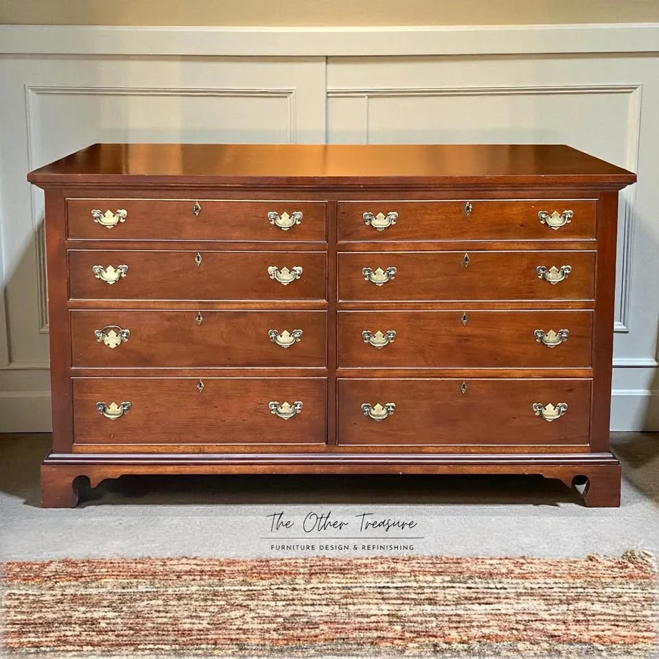A curated collection of vintage furniture, professionally refinished and ready to elevate your space. 📍 Local pickup in Raleigh, NC | 🚚 Nationwide delivery available Shop Categories: Select a Category Available Now Sold Archive Available to Customize Available Now Sold Archive Available to Customize Stunning Flame Mahogany Sideboard | Buffet $2,075.00 Victorian Renaissance Revival Dresser | Circa 1875–1885 $1,075.00 Solid Cherry Pennsylvania House Inspired Dresser $1,495.00 Vintage Flame Mahogany Demilune Console Table | Federal Table $1,395.00 Vintage Craftique Mahogany Pembroke Tables | Drop leaf tables $1,495.00 Coastal French Provincial 9-draw dresser | Credenza | Triple Dresser $2,495.00 Sage Green Console Table | Neoclassical Inspired Design $1,075.00 Vintage Chippendale Mahogany Accent Table | Drum Table | Side table $795.00 Vintage Bassett Burled Walnut Dresser | Mid Century Neoclassical Chest | Refinished Solid Wood Tallboy $1,495.00 Set of Serpentine Bachelor Chests | Bedside Tables | Oversized Nightstands $1,000.00 Vintage Chippendale Mahogany Tea Table with Fretwork | Flame mahogany | coffee table | accent table $895.00 Sold out Craftique Mahogany Double Dresser $1,075.00 Sold out Inlaid Flame Mahogany Console Table | Credenza | Entryway Piece $2,075.00 Sold out Stunning Vintage Mahogany Sideboard/Buffet $1,295.00 Sold out Henredon Scene One Campaign Dresser | 72” Wide | Mid-Century Modern $2,495.00 Sold out Henkle Harris Black Walnut Bedside Tables | Nightstands $1,595.00 Sold out Moody Oversized Nightstands | Bachelor Chests $1,595.00 Sold out Vintage Jasper Cabinet Mahogany Secretary Bookcase | Serpentine Drawers & Claw Feet $1,495.00 Sold out Dixie Mahogany Single Drawer Nightstand | Federal Style $295.00 Sold out Rare Craftique Mahogany Sideboard | Buffet $1,695.00 Sold out Ethan Allen Flame Mahogany Sideboard | Buffet $2,000.00 Sold out Custom Project $1,075.00 Sold out Set of Bachelor Chests 38"w | Oversized Nightstands | Bedside tables $2,895.00 Sold out Mid Century Blonde Beech Coffee Table with Brass Rosettes & Saber Legs – Neoclassical Vintage 1970s $695.00 Sold out Rare Pair of Mahogany Demilune Cabinets | Commodes | Nightstands $2,895.00 Sold out French Provincial Highboy Dresser – 1970s Vintage $1,075.00 Sold out Mid-century Sideboard | Buffet | Credenza | Gibbard Furniture $1,495.00 Sold out Bold Hot Pink Dresser with Floral Drawer Liners & Gold Ginkgo Pulls $1,295.00 Sold out Set of Bachelor Chests | Oversized Nightstands | Bedside Tables $1,895.00 Sold out Federal Flame Mahogany Server | Petite Sideboard $1,295.00 Sold out Henkel Harris Black Cherry Dresser | Style 124 | Finish 24 $1,695.00 Sold out Thomasville Regency Bachelor Chests | Oversized Nightstands 30" wide $1,895.00 Sold out Italian Provincial style Dresser | Mid Century Regency | Triple Dresser $1,495.00 Sold out Rare Oversized Craftique Bachelor Chests | 100% Solid Mahogany | 40"wide | Nightstands | Bedside tables $2,895.00 Sold out Flame Mahogany Heirloom Display Cabinet | Hutch | Entryway display $1,495.00 Sold out Neoclassical Console Table | Mid Century Regency Style | Foyer Table | Coastal table $795.00 Sold out 19th Century Antique Mahogany Nightstands | Restored Bedside Tables | 1800s Heirlooms $1,495.00 Sold out Italian Provincial style bachelor chest by Hooker Furniture | Dresser | Accent piece $1,495.00 Sold out Bobbin Oversized Bachelor Chests | Nightstands | 38" wide | Jenny Lind bedside tables $2,295.00 Sold out Rare Craftique French Directoire style Sideboard | Flame Mahogany | Buffet $3,495.00 Sold out Drexel Travis Court Mahogany Chest of Drawers | Serpentine Dresser | Federal Dresser $1,295.00 Sold out Drexel Travis Court Mahogany Triple Dresser | Serpentine Dresser | Credenza | Federal Dresser $1,495.00 Sold out Hot Pink Drexel Glossy Bachelor Chest | Dresser $1,295.00 Sold out Thomasville Chest of Drawers | Dresser | 5 Drawers | 100% Solid Wood $1,075.00 Sold out 1960s Stunning Thomasville Dresser Set | Mid-century Regency $1,495.00 Sold out Luxurious Baker Furniture Chippendale Dresser - 72”w | Coastal Dresser | Credenza | Sideboard | Entry table $1,695.00 Sold out Rare Oversized Henkle Harris Bachelor Chests | 42"wide | Nightstands | Bedside tables $2,895.00 Sold out Dixie Serpentine Mahogany Dresser | Credenza $1,295.00 Sold out Extremely Rare Antique Flame Mahogany Sideboard | Buffet | circa 1890s - 1910s $3,095.00 Sold out Antique Mahogany Neoclassical Server | Sideboard | Buffet | Console table $1,075.00 Sold out Hammary Mahogany Neoclassical Console Table | Petite Server Italian Provincial style | Mid Century Regency $895.00 Sold out Vintage Hekman Copley Flame Mahogany Sideboard | Buffet | Sever $3,495.00 Sold out Antique Federal Sideboard | Buffet | Server | Hepplewhite pulls $2,495.00 Sold out Bobbin Oversized Bachelor Chests | Nightstands | 40" wide | Jenny Lind bedside tables $2,295.00 Sold out Faux Bamboo Nightstands (Solid Wood) $1,295.00 Sold out Hekman Bachelor Chests - 38" wide $1,895.00 Sold out Mint Green Faux Bamboo Cabinet | accent table $995.00 Sold out